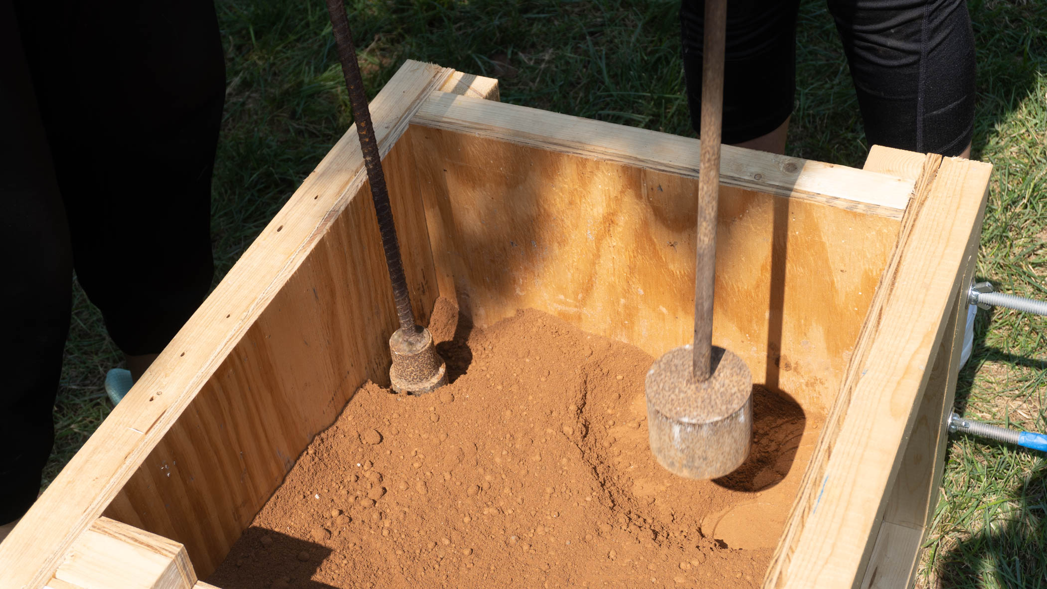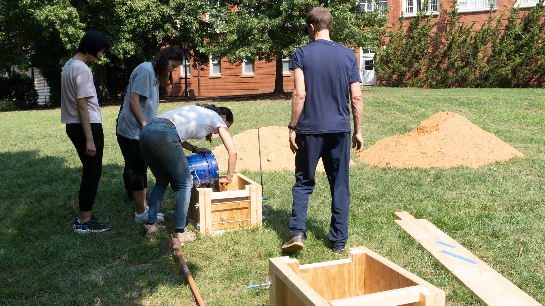 ‘Taller de tierra’  actividad realizada en Carolina del Norte, dirigida por Karen Poulain y coordinada por Lia Newman. Durante el taller se dio forma al diseño y construcción de una banca para el campus Davidson College. Construida mediante un proceso de tapia pisada con tierra de la zona y madera, la pieza explora el diálogo con el entorno.